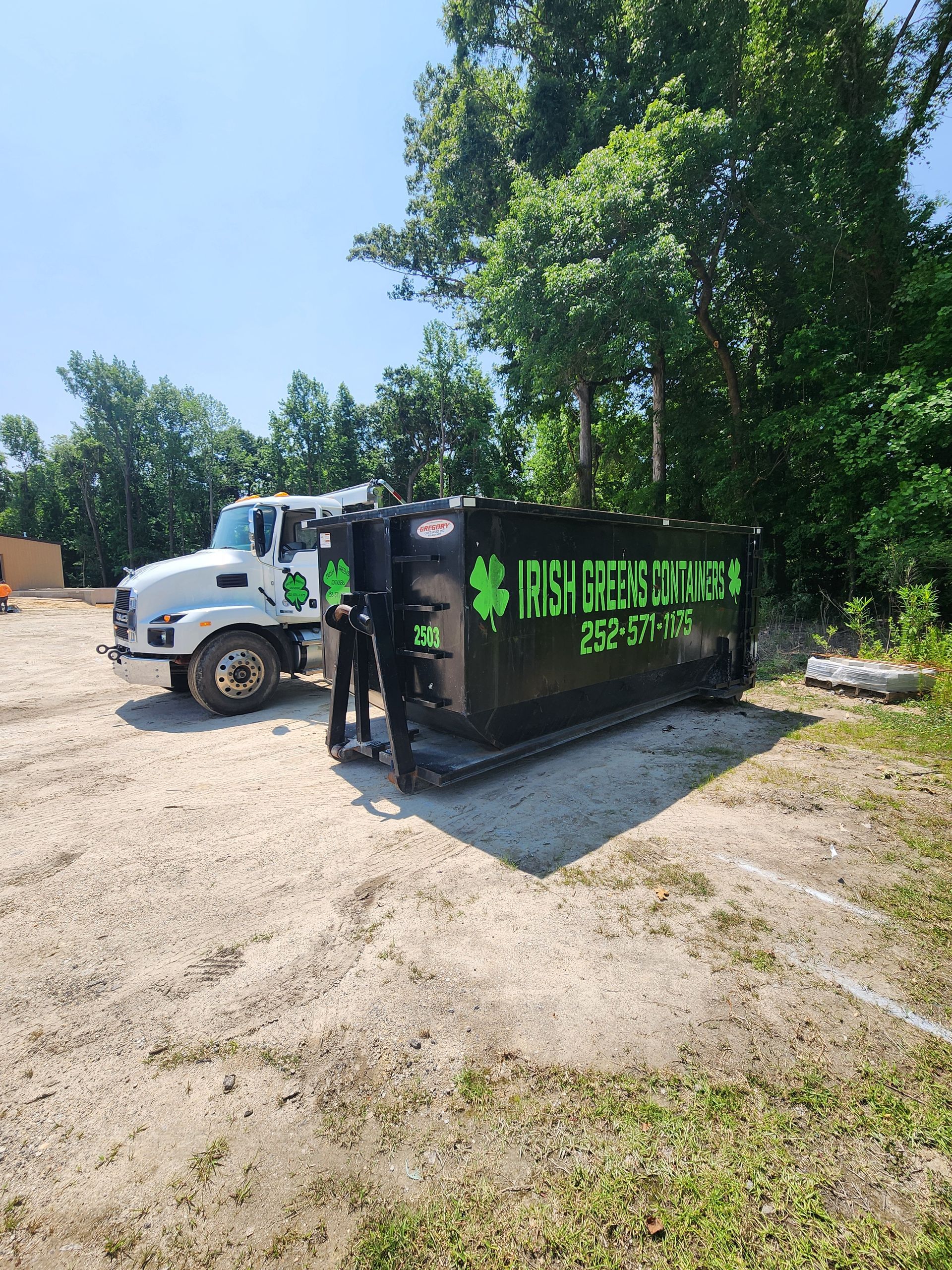 Our dumpsters are delivered promptly and placed with care, offering easy walk-in or top-load access. With flexible rental periods and straightforward pricing, customers throughout Craven, Carteret, and Onslow counties trust Irish Greens for stress-free waste management solutions.