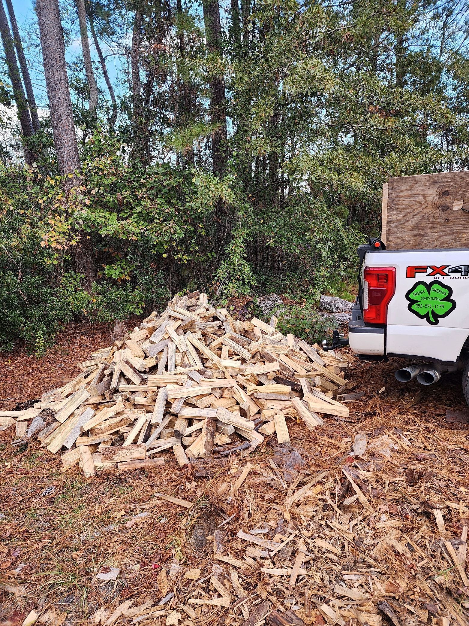 Irish Greens is also a trusted local source for firewood sales in Eastern North Carolina. We offer seasoned firewood ideal for fireplaces, wood stoves, outdoor fire pits, and backyard gatherings. Available by the bundle, face cord, or full cord, our firewood is ready to burn and competitively priced.